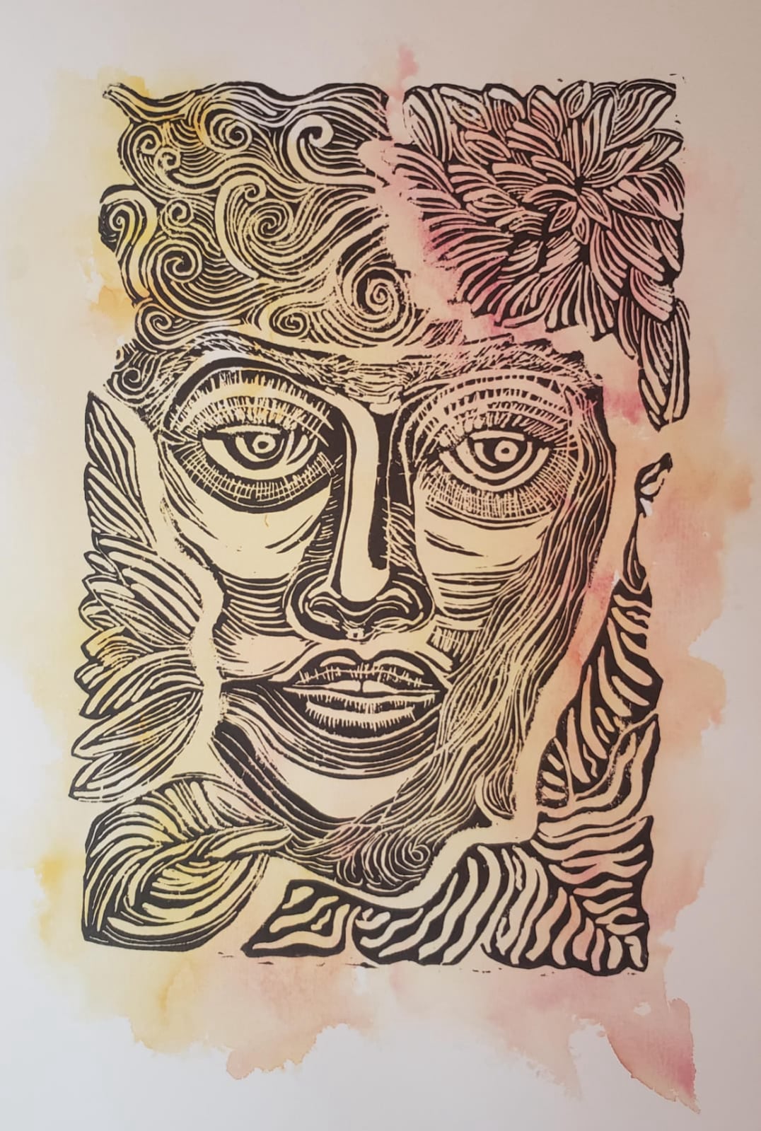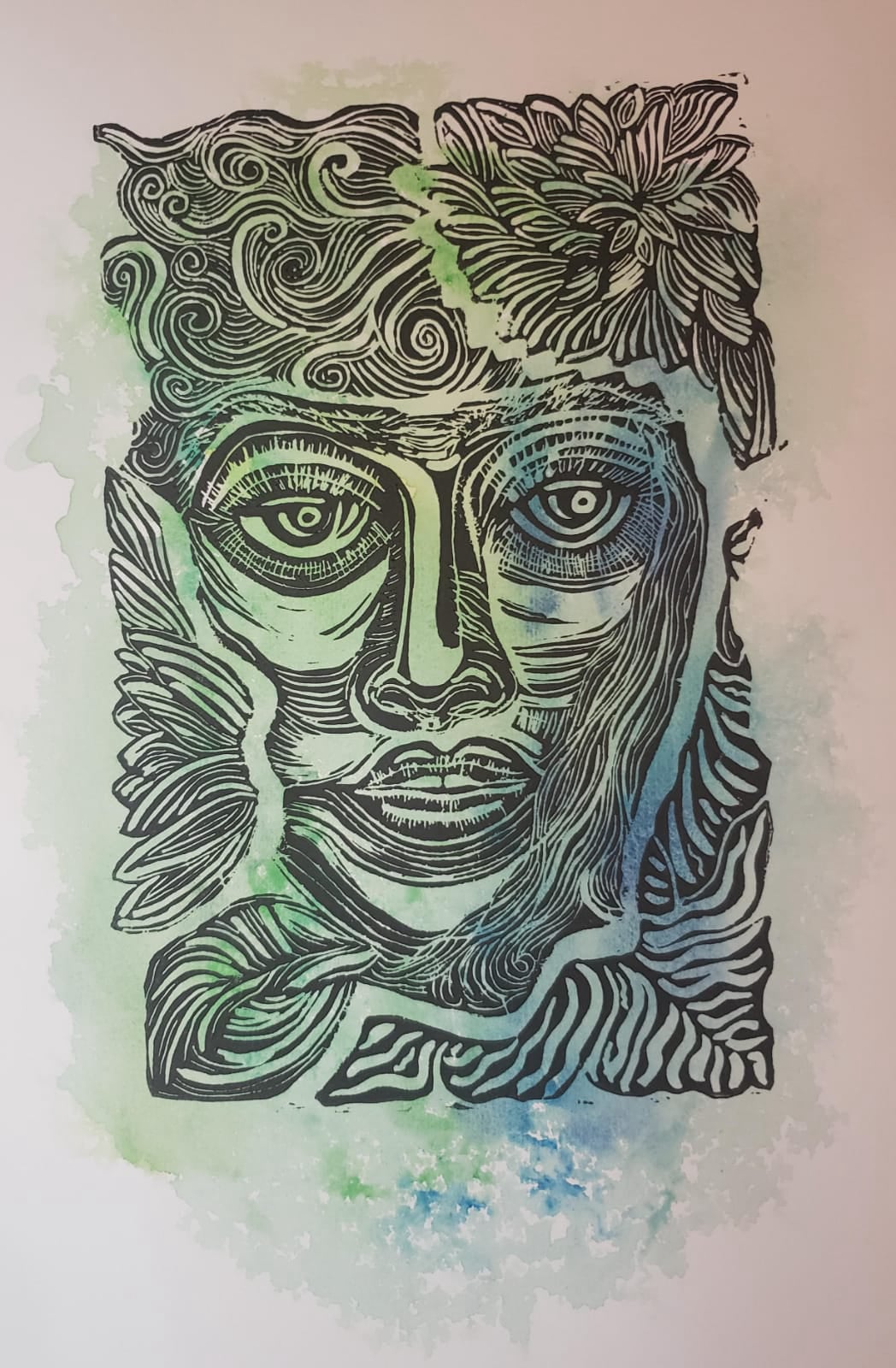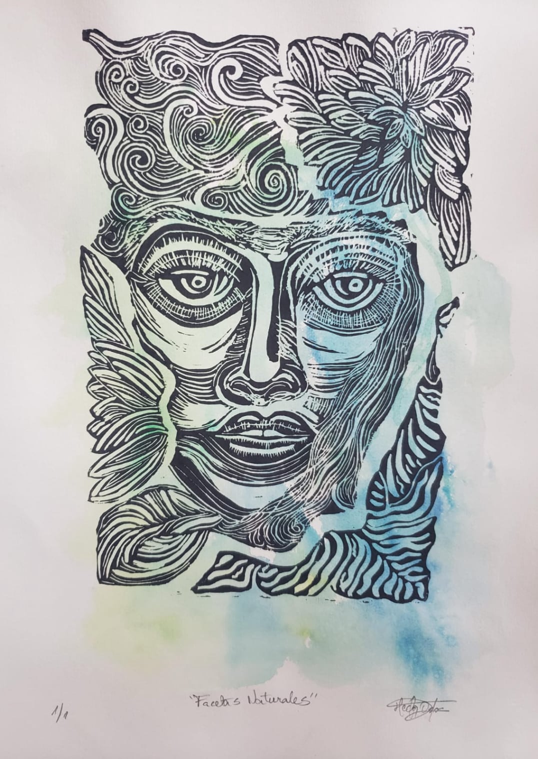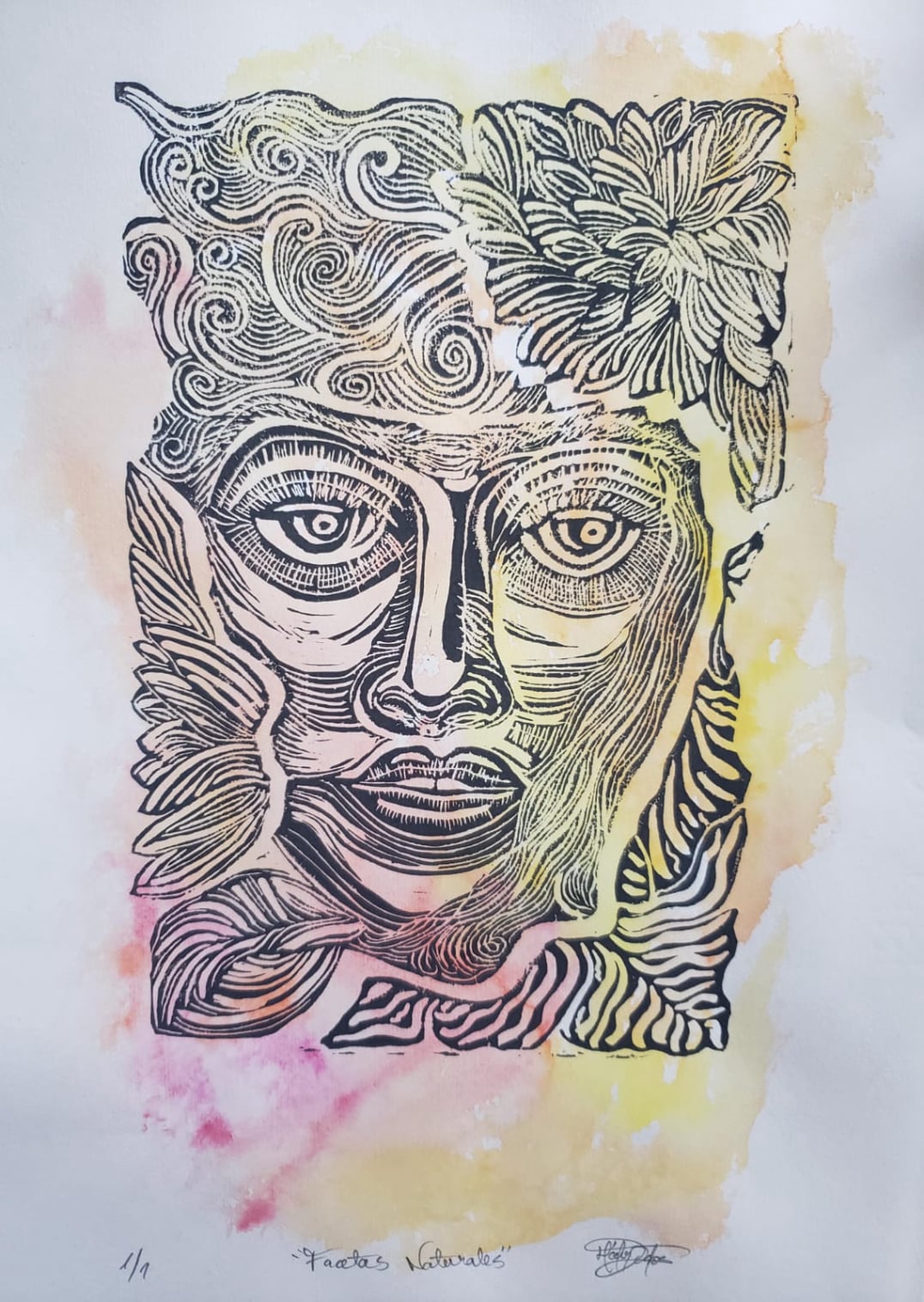 Facetas naturales grabado sobre acuarela 35x25 cms.