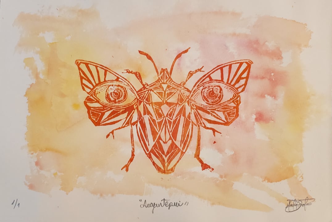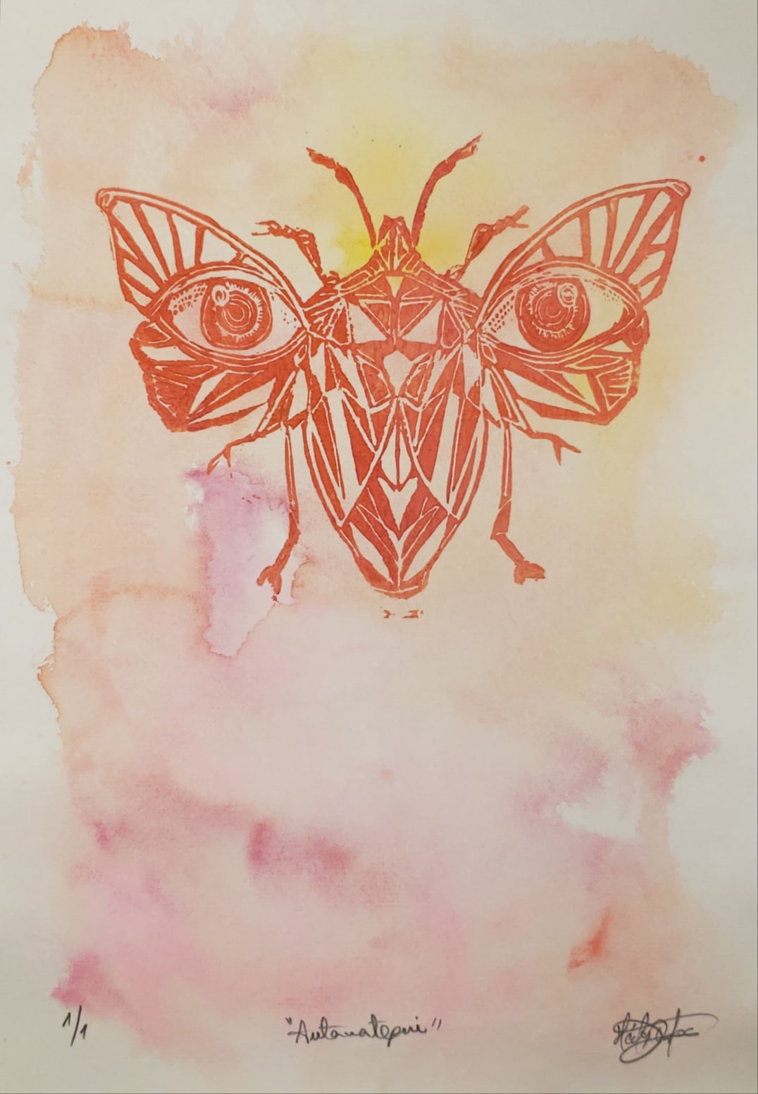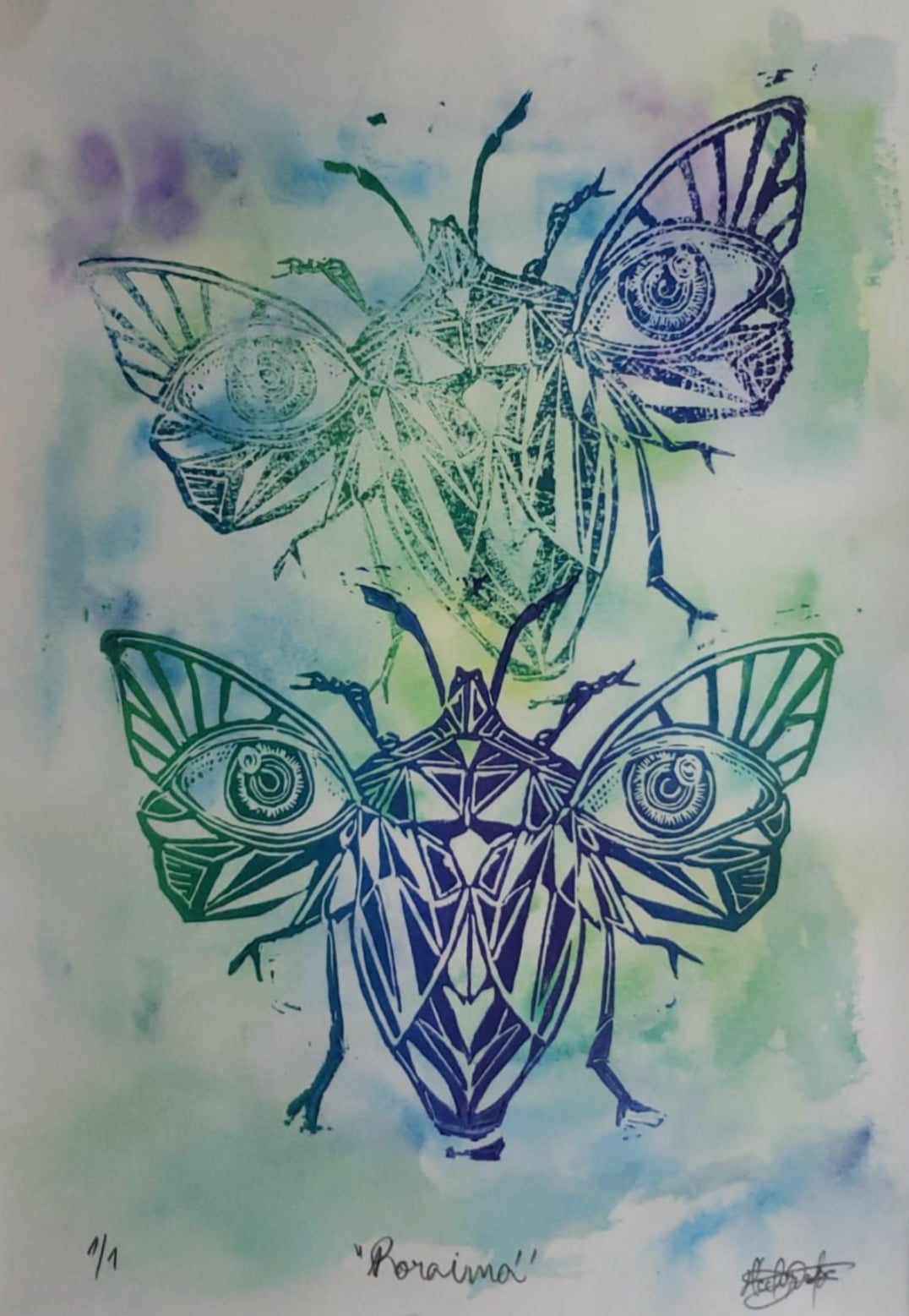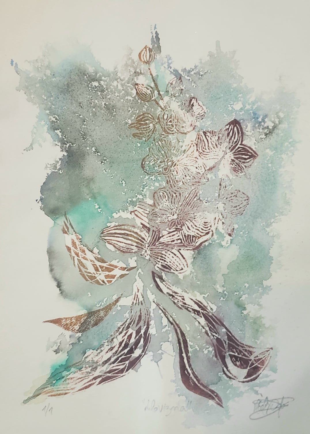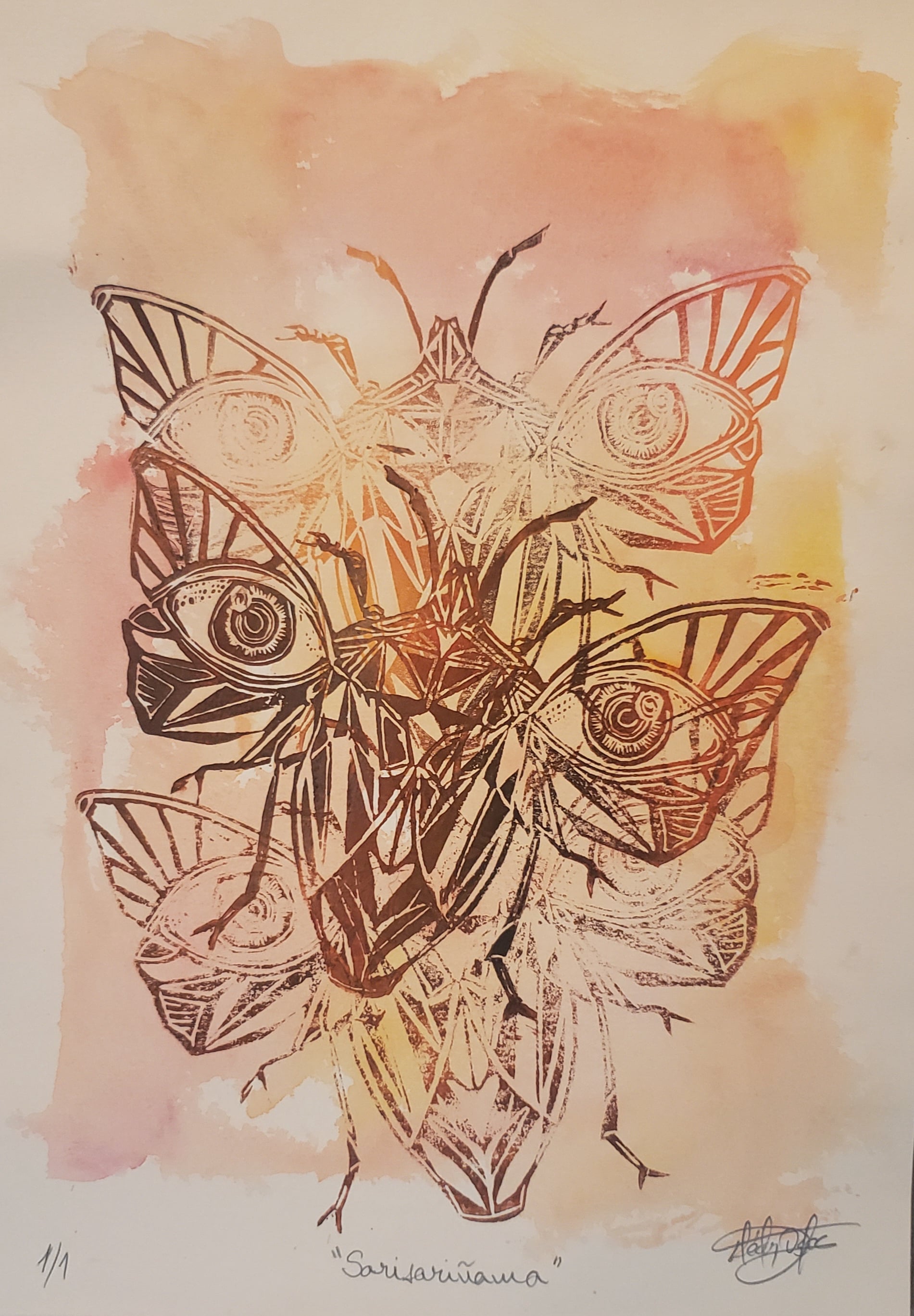 Sarisariñama grabado sobre acuarela 35 x 25 cms.