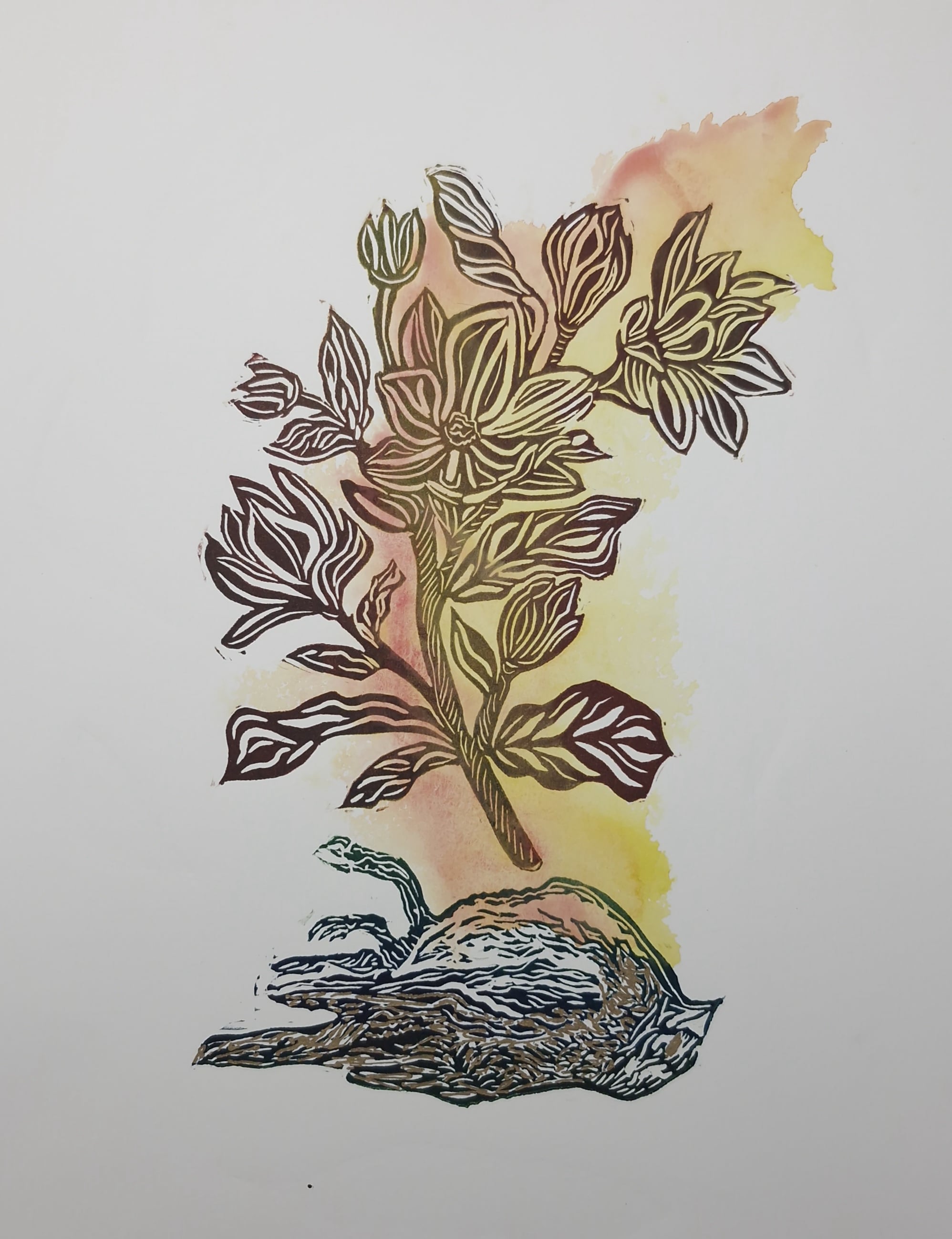 Autanatepui grabado sobre acuarela 35 x 25 cms.